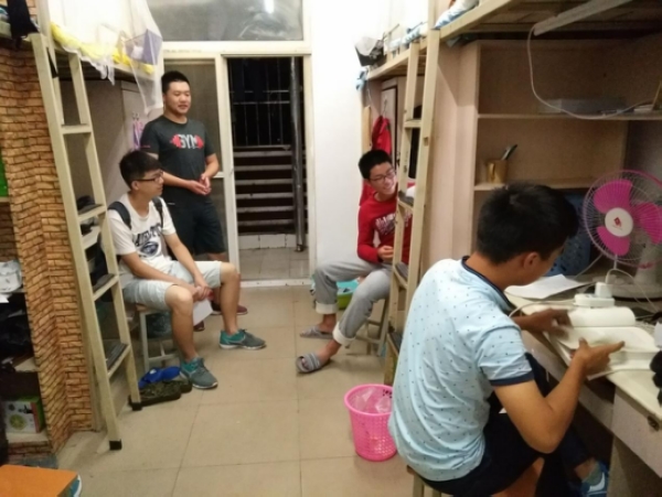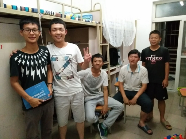 马飞在053017寝室里与四位新生交流了《土木工程制图》的相关学习经验,最后还与新生们留下了合影。他说:“在和新生们聊天的同时,我也不由地想起了当年的自己,真是青涩。真想和他们多些机会接触。”王子聪在053020寝室还与张家鹏同学探讨起了人生哲理。