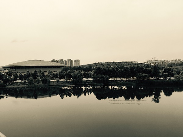 夏初的时候,湖水漫溢,盖过了黑褐色的河慢,浸到了河滩草丛的根部。从河道两旁走过,仿佛可以听见游鱼咄食草根以及细微气泡破碎的声响,细细的,仿佛万籁俱寂时隐约的梦呓,驻步细听,只有游鱼摇尾时摆弄波浪的响声。夏天的时候,喜欢在清晨站在图书馆的天台上眺望湖面,夏天的水位高,湖面显得辽阔,视野也宽阔明亮。清晨的湖面有一如蛋壳般薄薄的静,湖面偶然荡起一丝涟漪,又马上沉静了下来,湖水的颜色较之正午更深邃,介乎于青蓝和深黑之间,湖面平静的犹如一展墨画,深青的色泽和沉静的神韵都将人的思绪和目光吞噬而去。