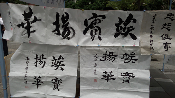 展出作品是由广大毛笔爱好者以各种书体——包括楷书、行书、行草、隶书等——书写交大精神、校训,收集好后向全校学生展示。经过半个小时现场准备,所有的作品悬挂完毕,展览活动正式开始。