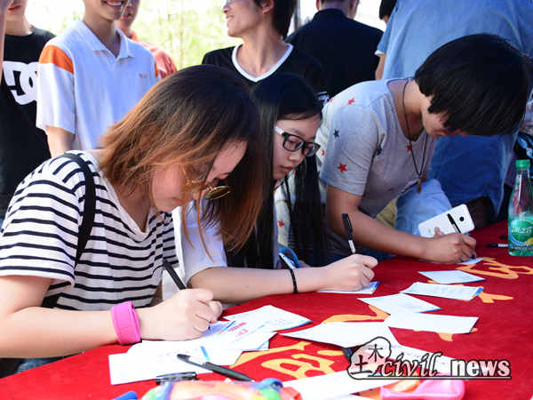 虽然天气异常炎热,活动点的工作人员并未懈怠,时刻准备为同学与校友提供服务服务。黄雪娇老师只在活动点喝了一瓶牛奶便又投入到了工作中。为了避免发生中暑等意外事件,马克思学院在四教旁边设置了饮水服务点为同学以及校友免费提供矿泉水。此外,校医院也在四教旁边设置了医疗服点,随时准备为需要者提供医疗服务。