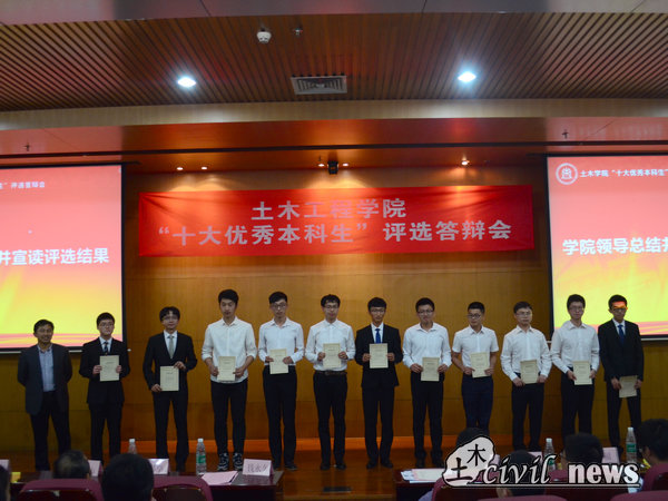 2015到2016年度“十大优秀本科生”荣誉称号(其中马东华和唐庆并列),刘翔宇、王顺意、徐航和刘强等4名同学获得提名奖。钱永久书记亲自上台为获得“十大优秀本科生”称号的同学颁奖,祝贺他们取得的成绩,也希望他们再接再厉,再创佳绩。