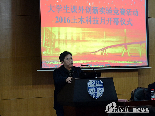 党委钱永久书记对本年度土木科技月活动进行动员讲话。钱书记站在世界的视角上,来剖析各国的土木工程,让在场学子对各国土木的发展方向有了一些了解,同时也对这次比赛有了更高的热情。最后,钱书记祝本次比赛可以顺利召开,也预祝其圆满结束。
