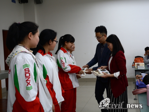 比赛即将结束了,看着弄得一地的A4纸碎片还有手上的胶水,再看看做出来的模型,大家都很开心。在结束一天的活动的时候,学院为比较优秀的几个小组颁发了奖品。