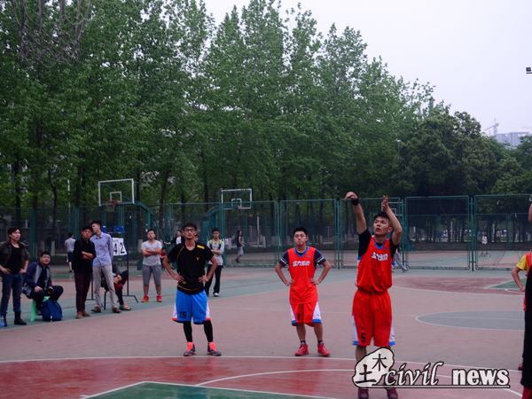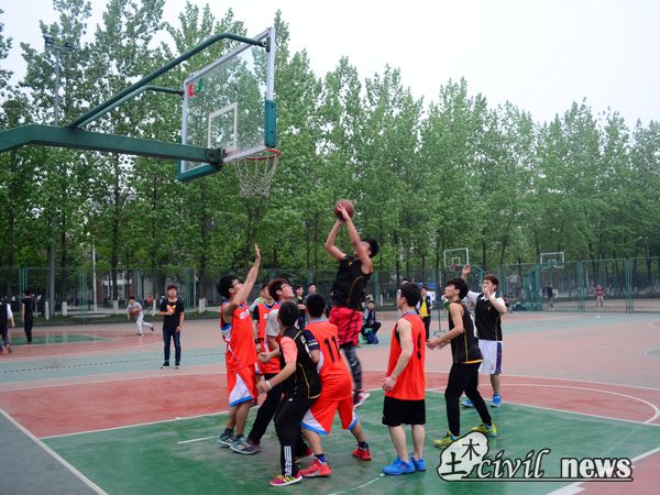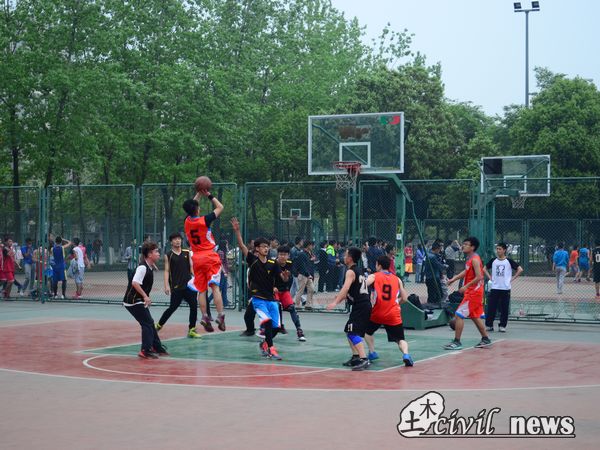篮球赛终于在北区篮球场迎来了期待已久的半决赛。半决赛的对阵情况是,科创中心对阵第十一党支部和第七党支部对阵第十三党支部。