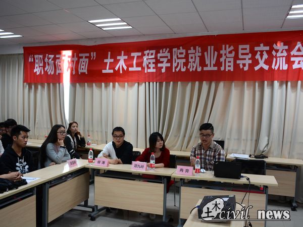随后,冉弈学长又为大家讲述了土木工程专业毕业后工作的大致方向。他说,毕业后大家的工作大致分为两类,即建筑方向和非建筑方向。学习建筑方向的同学要去建筑段工作。而学习非建筑方向的同学则要去工务段从事线路方向和桥路方向的工作。从事线路方向工作的同学主要负责铁路及相关设备的日常保养与维修,防止铁路的胀轨和断裂。从事桥隧方向的则要负责对自己管辖区内的桥梁和隧道进行长期的检查,维修和维护。然而,大家的工作环境并不是绝对稳定的,随时可能会发生调动。但是所从事的每一项工作和任务的意义与责任却是重大的。讲到这里时,学长告诉大家:一定要对工作有一个良好端正的态度,不要因为工作环境的艰辛而怨天尤人。我们要有一种敢于奉献的精神,肯于为自己的工作付出自己的全部心血与精力。这样我们的生活才会更加充实而有意义。