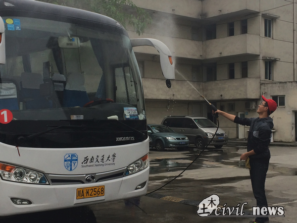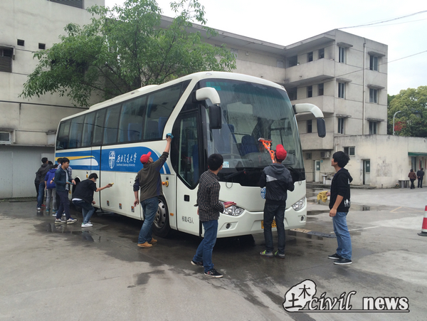 四月二十三日,在这距离交大一百二十周年校庆还有21天日子,我们的志愿者决定给校车洗洗澡,让校车以崭新亮丽的面貌迎接校庆。于是,由土木青协交通三队组织的18名志愿者们在下午2:30坐上了去往九里校区校车站的大巴。