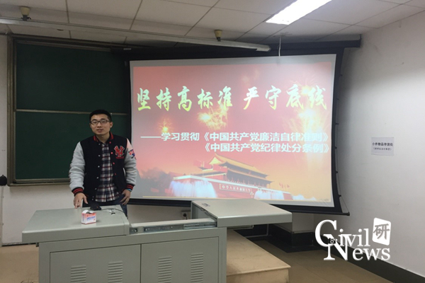 为深入贯彻西交校党〔2015〕87号文件精神,12月17日晚7时,2015级专硕岩土1班党支部在九里校区逸夫馆4304B教室召开了主题为“读懂《准则》和《条例》,增强党章党规党纪意识”的主题生活会,会议由党支部书记陈拔进主持。