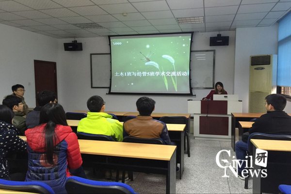 会议伊始,经管5班的同学以PPT的形式向大家介绍了专业知识,并着重介绍了《工程经济与项目管理》的相关内容。“《工程经济与项目管理》内容丰富,论述全面,理论联系实际,有较强的实用性和较高的科学性。它较全面地阐述了建筑业的基本经济规律、工程经济的评价理论、工程项目管理的基本方法。主要内容包括:项目工程经济分析、工程项目合同管理、工程项目成本管理、工程项目风险管理等等。”经管5班刘晶同学如是说。
