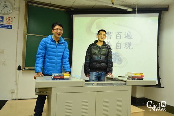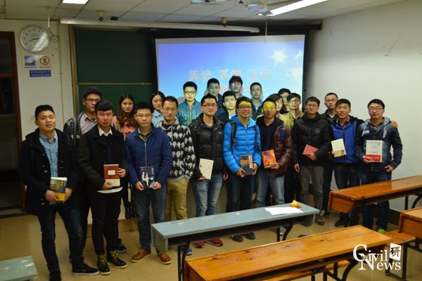 最后班长段东亚提出倡议,希望以此次读书会为契机,建立一个班级图书馆,为喜欢看书的同学提供更多有意义的图书,也方便同学之间交流。并在毕业之际将所有的图书以班级的名义捐出去,使更多的人获益。