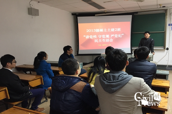 为深入贯彻西交校党〔2015〕87号文件精神,12月11日下午三点,2013级硕士土建2班党支部在九里校区土木馆1119教室召开了主题为讲党性守党规严党纪的主题生活会,会议由党支部书记黄家聪主持。