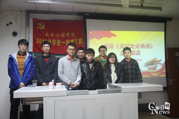 12月13日晚上7点半,15级学硕岩土一班党支部在逸夫馆4419教室召开了12月份的支部专题活动,主要内容为“新版《党纪处分条例》的变化解读”。