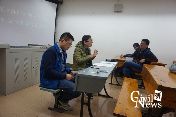 在与博士班同学的交流中,梅大鹏高工首先对现行党员入党以及党组织的情况发表了自己的看法。他谈到,应该加强对入党积极分子的动机、态度的考察;特别是切勿妄议党的政策、方针,对自己的言论要谨慎。对党的纪律、要求等均要有深刻理解,关心中央的政策。