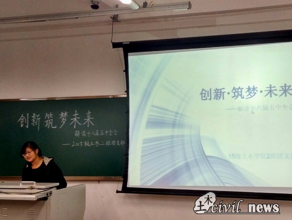 11月26日中午两点,2015级土木2班在X9304顺利举办了主题为“创新·筑梦·未来”的主题团日活动。本次活动由团支书鲍晶晶主持,活动形式丰富精彩,到场的同学都热情高涨积极参与,勤奋非常活跃。