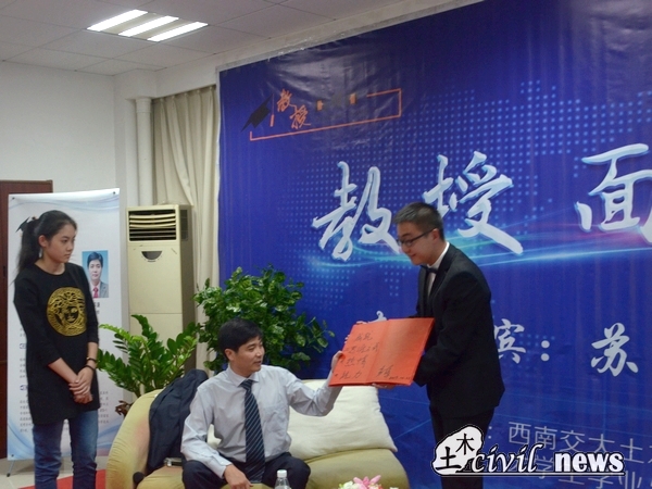 苏谦教授也很平易近人的讲述了自己的求学经历,他给我们讲诉了一些关于学习方面的经验,其中特别强调了注意掌握学习方法,多做习题,主动学习。当问及在大学里印象最深的事时,苏教授提到了自己的老师,他说道:“当初的自己有一颗出去打拼天下的雄心,要出去闯荡一番,而我的老师说我有做研究的天赋,劝说我留校做研究。我也按照老师的期望努力到了今天,如今自己也以一种科技的方式投身于祖国的建设中了。”