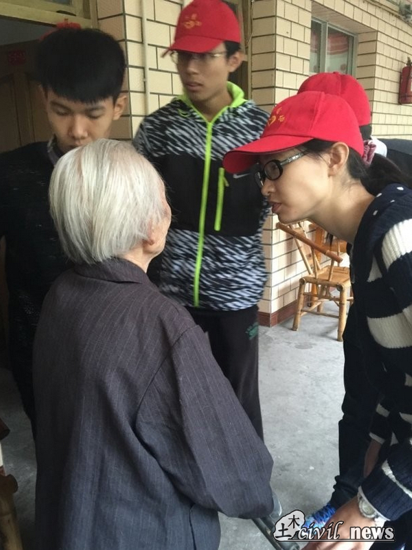 在老年公寓护工的带领下,志愿者们分为两组,分别看望住在一层和二层的老人。看到志愿者们的到来,老人们都很开心,他们高兴地接过志愿者带来的水果和手工制作的小礼品,与志愿者聊起了家常,场面和谐融洽。
