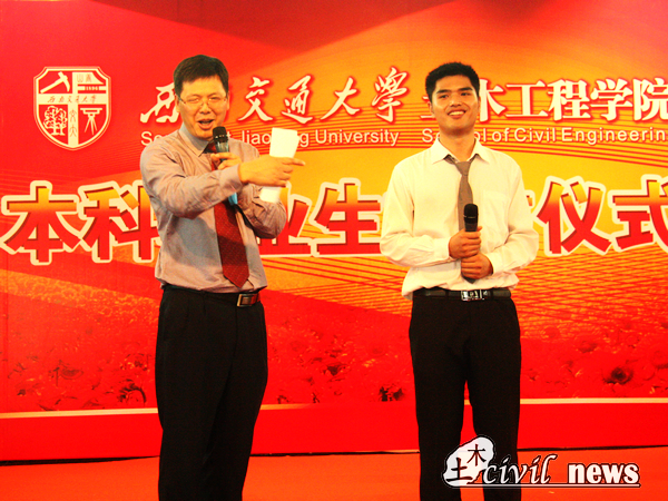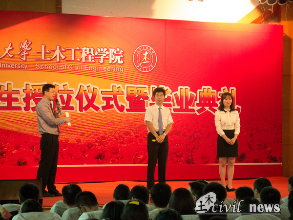 毕业典礼如期举行。在优秀学生干部表彰结束后,3点40分,在主持人李锦红书记的“总想做一点特别的东西”的感叹中,典礼进入到四个大学纪念部分之一的“土木记忆”。