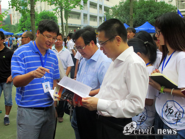 级土木新生导航》由“学院寄语”“十大优秀学生简介”及“新生入学教育”三个部分组成。在读到“十大优秀学生简介”时,徐飞校长给予了高度评价。他说:“大一新生入学的时候,就像一张白纸,通过优秀学长学姐的带动和激励,能够让他们走上正确的学习之路,开启崭新的大学生活。”