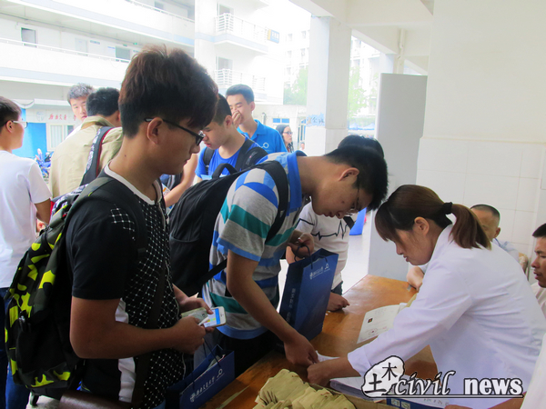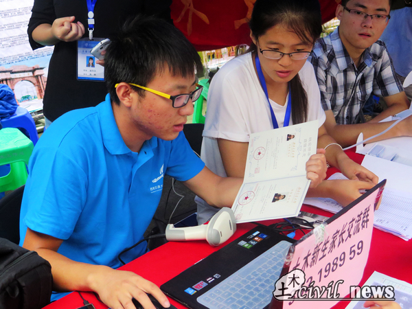 临近中午,来报到的新生越来越多,迎新点显得十分忙碌。报道注册、领取一卡通、领取新生大礼包和缓缴学费学生填写申请等地都挤满了人。虽然工作繁复、艰巨,但是各位工作人员都恪尽职守,一丝不苟地做着自己的工作。完成上述步骤后,各位新生在助辅的陪同下,顺利入住了今后四年属于他们自己的小窝。