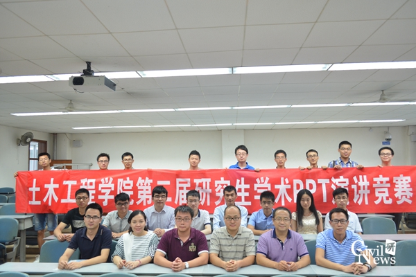 接下来,14名参赛选手依次登台演讲,选手们的演讲内容大多以自己的主修专业展开,也有部分同学另辟蹊径。首先上台的是一位桥梁专业的选手,他以“玻璃桥”为话题,借用一张张简洁、明朗、富有活力的幻灯片,在一开始就将比赛气氛带动了起来。之后,选手们的演讲愈发精彩,话题从隧道专业的隧道抗减震、围岩与隧道结构相互作用、盾构隧道掘进试验,到桥梁专业的桥梁美学、桥梁设计创新,再到铁道专业的CRTSⅡ板式无砟轨道、减振轨道结构等等,选手们都充分展示了自己的对专业知识的把握。同时还有两位选手以“思考”和“科学精神”为话题,以其发人深思的演讲引发了评委老师和观众们的思考。