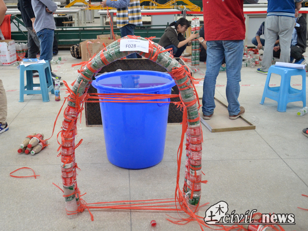 部分选手选择给塑料瓶填清水以帮助固定底座