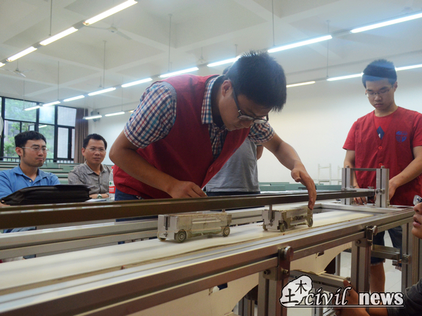加载开始后,工作人员为小车保驾护航
