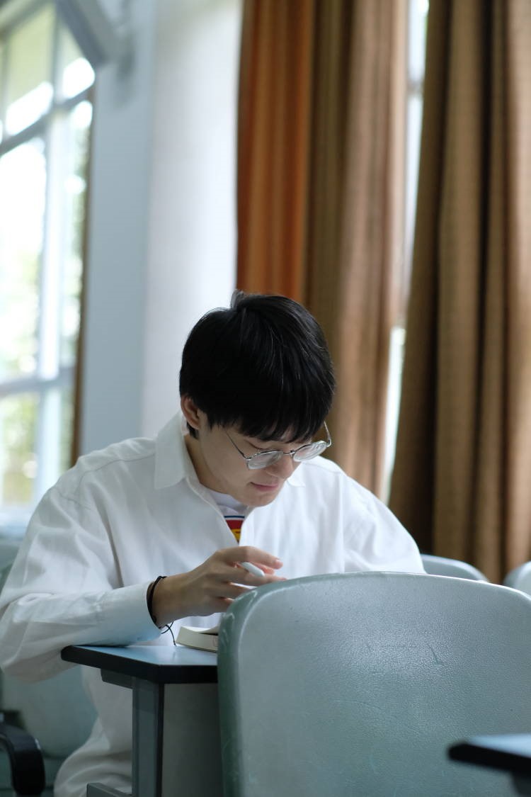19:30分,活动正式开始,主持人邀请韩晓彤同学入座。首先由韩晓彤同学进行了一个简短的自我介绍,主持人幽默的调侃恰当地打开了活动现场的氛围。紧接着,主持人向韩晓彤同学提问:韩学长对自我的定位,用一个词或者一句话来评价自己。韩晓彤学长给出了他的答案——勤奋。“漫漫书涯,奋勉为先,既需要步步为营,做好学习及科研规划;同时也要广泛涉猎,心存远大理想和目标。相信不经意间播下的种子,最终都会绚丽盛放。”作为19级首批正式党员,韩晓彤同学讲述了代表色情短剧