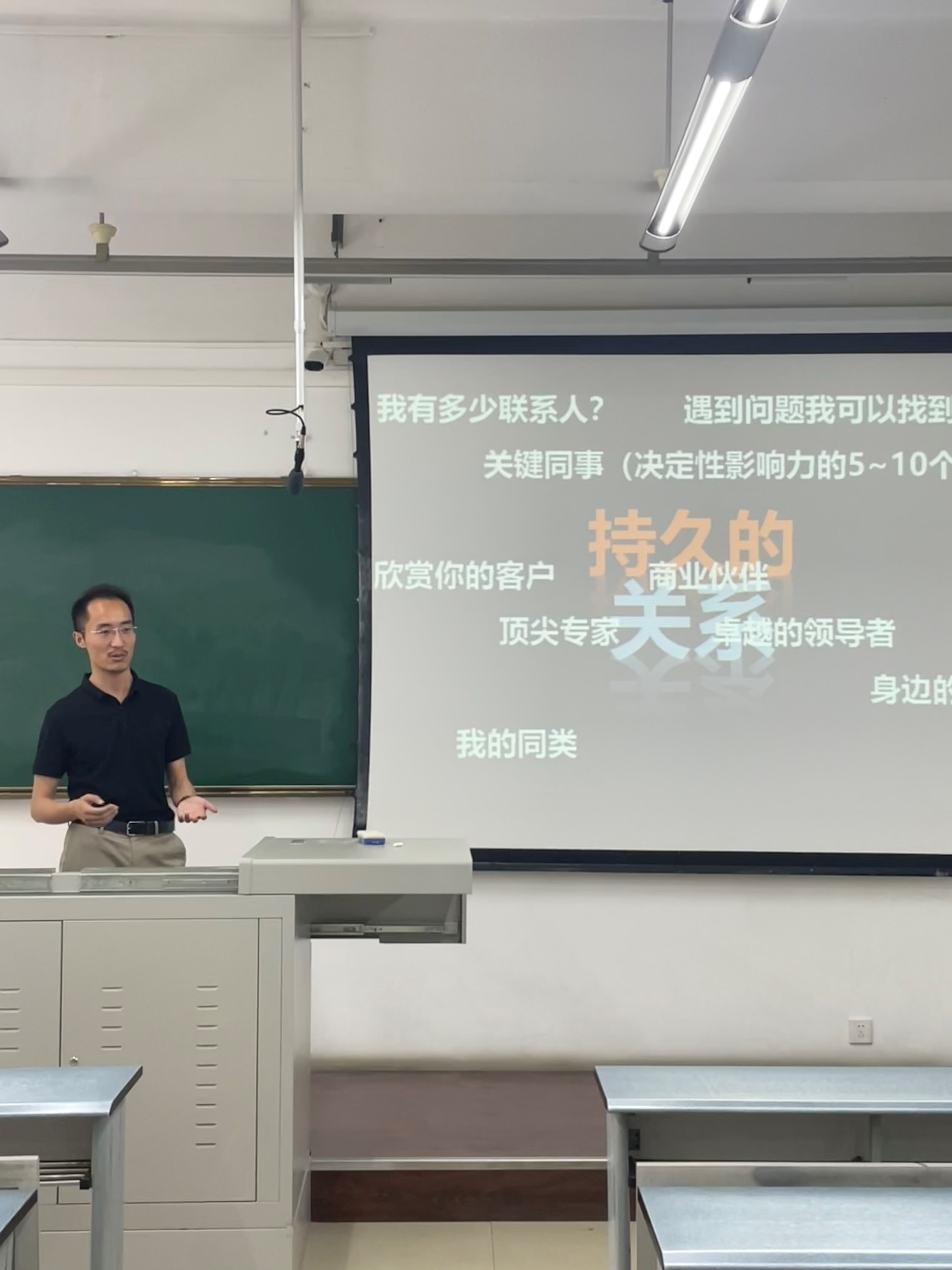 其次,陈晨老师引导学生进行职场预备,包括明确职业理想、了解手头职场燃料以及为实现终极理想所需的职场燃料等。他鼓励学生在校期间积累早期形式的职场燃料。