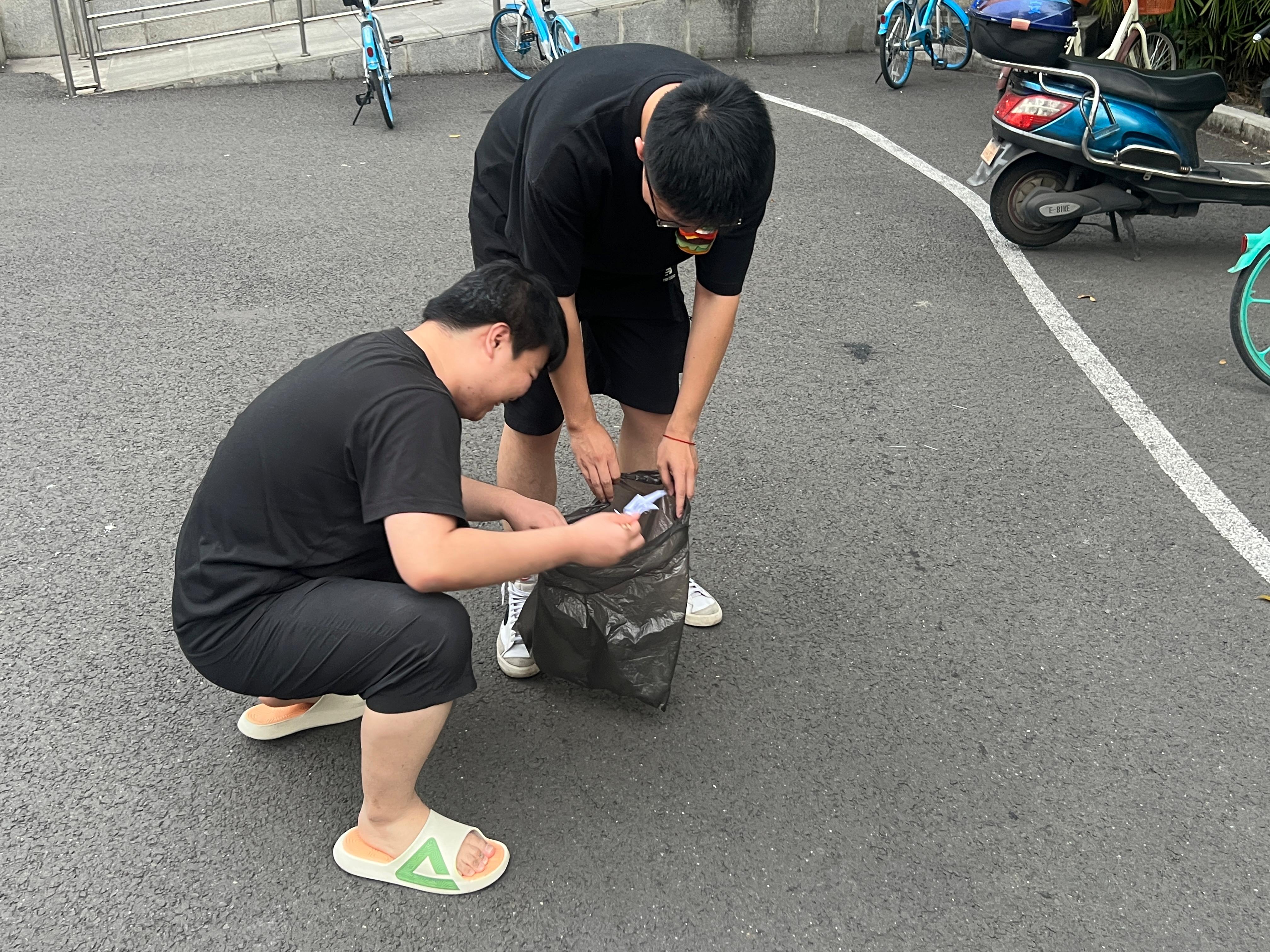 次日,支部党员积极参与了“美化校园环境”党员志愿服务活动。共同清理了4号教学楼周边草丛里的垃圾,整理并摆放了4号教学楼下的共享单车,为整个校园创造了一个干净、整洁的环境。这一志愿服务活动旨在引导党员以身作则,为师生办实事,办好事,倡导文明校园建设,培养社会责任感和公民意识。