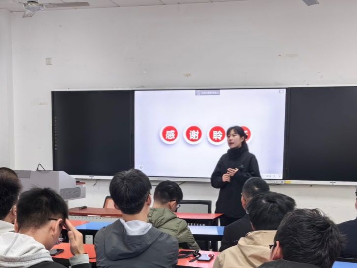 辅导员贾璇琦老师代表同学们向导师们表示感谢。她就两位企业生涯导师在与同学们交流中提到的制定目标、做好规划这一话题向同学们提出希望,在本学期剩余的时间中为自己找好阶段性目标,争取在即将到来的期末考试中取得理想成绩。