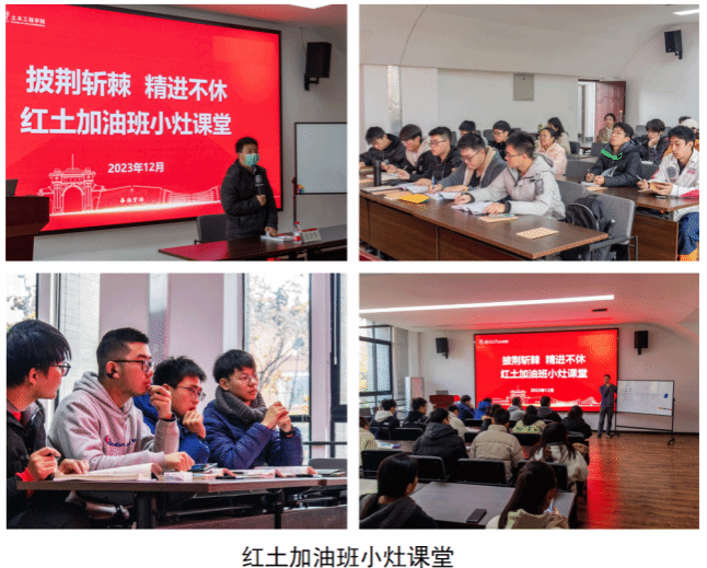 全面落实“立德树人”根本任务,切实做好学风建设工作,提升学院育人质量,做好外部推力工作,为后进学生提供更加全面的学业帮扶措施,特设红土加油班,汇聚辅导员、专业老师、党员先锋帮帮团和学业监管助理四方合力,精准开展学业帮扶,在学风建设中充分发挥党员先锋和朋辈引领作用!创新开设小灶课堂,邀请任课老师担任学业导师,为学员提供额外学业帮助。第一期红土加油班共开展2次小灶课堂活动,为21级同学邀请到张育智老师主讲《混凝土结构设计原理》,为22级同学邀请到王轶文老师主讲《大学物理 BⅡ》。