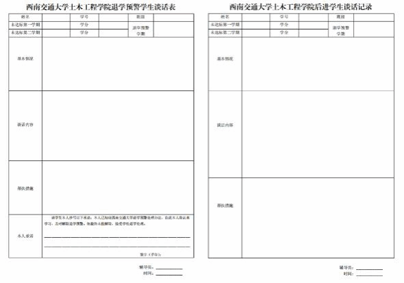 后进学生谈话记录》,并装档成册。落实辅导员对于退学预警学生的谈心谈话制度,随时跟进帮扶措施,帮助学生在一学期的前、中、后期不同阶段制定有效学习目标,实施个性化帮扶。
