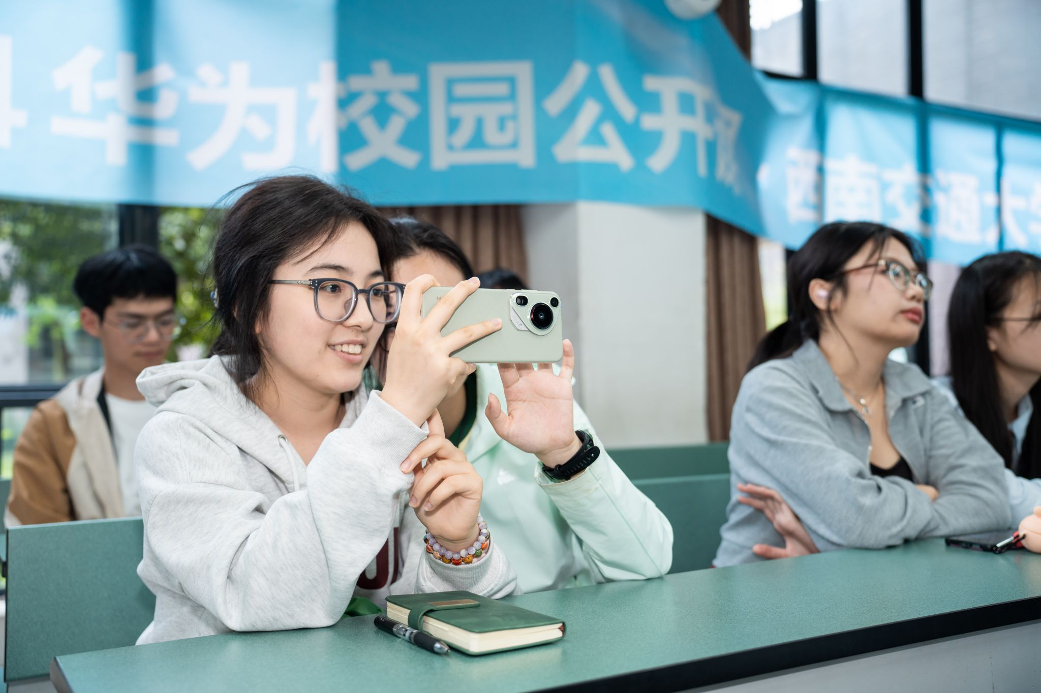 现场师生听得津津有味,问答互动环节更是引发了热烈反响,师生们积极参与,踊跃发言,与华为专家们展开了深度交流并体验了最新的影像旗舰设备。