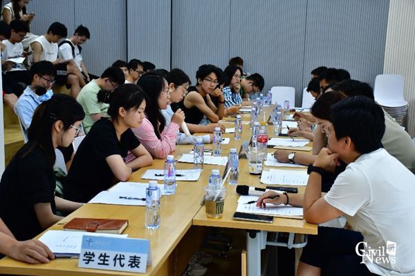景星维提问:“大家对于思政课的内容深度是怎么想的,是想内容深一些还是浅一些。”学生代表回答道:希望思政课的内容由浅入深,难易结合,主要方式为在特定的比较重要的内容进行深入,课程整体节奏都比较轻松。