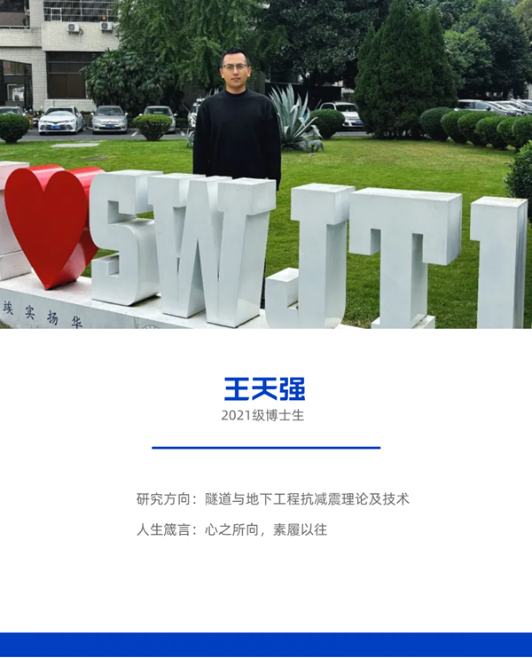 桥梁与隧道工程专业隧道方向。当问起王天强为什么选择读博时,他的说法是:“读博的想法是在我在硕二期间萌生,研三决定攻读博士,最终的选择是遵从内心,是兴趣使然。”