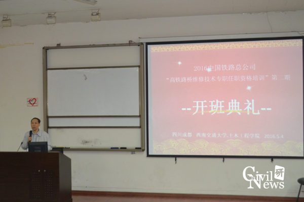 的悠久历史及学校120周年校庆准备情况。任副院长说到,土木工程一直是学校的优势学科,有着120年悠久的历史,在国内处于领先地位。同时,学校十分重视铁路总公司下达的培训任务。任副院长结合我国快速发展的高铁建设,讲述了国内外铁路行业对技术人员的新要求,承诺学校将配备优秀的教学资源,保证教学质量,希望各学员结合铁路局运营与管理方面的实践,充分吸收培训内容,实现教学相长,珍惜这次培训机会,沉下心来,汲取新知识并在将来学以致用。希望大家最后都能通过资格考试,并带着优秀的成绩回到自己的工作岗位。