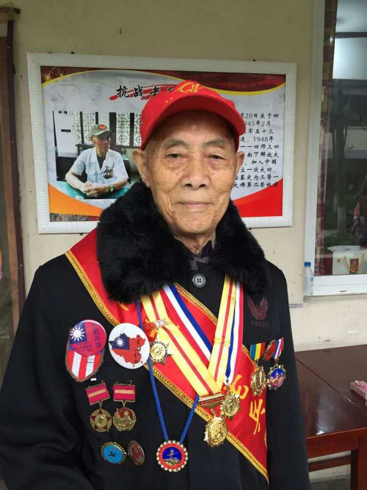 坐在苗老身旁的是何镜明老英雄。何老是曾是中国远征军的一员,随远征军参加“腾冲战役”、“松山战役”等多场重大战役。今年9月,何老还作为老兵代表,在“纪念抗战胜利70周年”的阅兵庆典上,乘车从天安门前走过。回忆起当年的战况惨烈,何老不禁热泪盈眶。在得知同志们的新党员发展对象的身份后,何老叮嘱道:“希望同志们要积极地向党组织靠拢,听党的话,努力学习。”