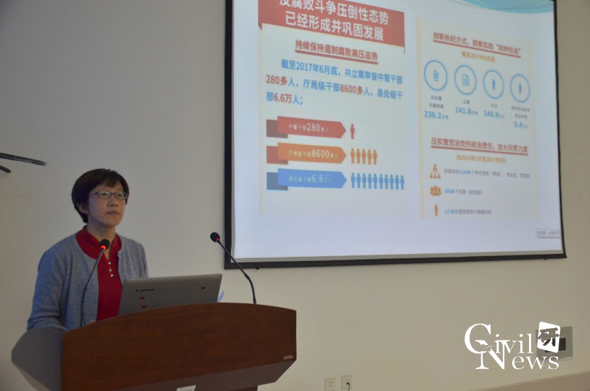 随后,李彤梅副书记进行了以决心坚如磐石为主题的反腐宣讲;为我们解读了十九大的八大重磅反腐信号;同时还让我们深刻认识到反腐败斗争形势依然严峻复杂,巩固压倒性态势、夺取压倒性胜利的决心必须坚如磐石。此外,她还举出许多实例来对礼尚往来、违纪及受贿进行区别解读。