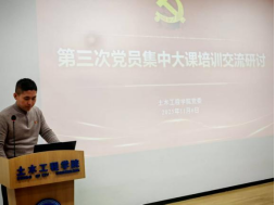 2025级硕士桥梁3班党支部于九里校区工业中心多功能厅召开党员主题党日活动,会议围绕“深入学习贯彻习近平总书记关于教育的重要论述,以教育强国支撑引领中国式现代化”主题并结合第三次党员集中大课培训进行讨论。