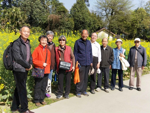 退休第一支部的同志们来到青杠村香草湖,考察农村新貌。