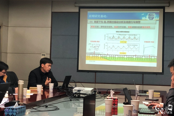 桥梁工程系与川藏铁路相关的研究成果,包括高铁行车安全的大数据、山区桥梁抗风、地震车桥、高性能新型组合桥面、钢桥的疲劳性能、钢-混组合桥的温度与徐变耦合效应等方面。桥梁系各参会教师结合各自的研究方向和关心的问题分别发言、积极讨论。