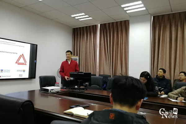 进行学术交流。黄劲松教授长期从事岩土工程风险分析和随机场模拟理论研究,在边坡稳定性,计算岩土力学及贝叶斯更新问题研究上颇有建树。上午十点,在土木馆1440会议室,黄教授以“贝叶斯定理在岩土工程中的应用”为题,为大家带来一场精彩的前沿学术讲座。讲座由道路与铁道工程系副主任刘先峰教授主持。