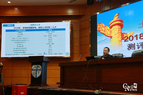 随后,学院中层副职领导李锦红、李彤梅、峨眉土建系童万波、富海鹰、王明年、艾长发、闻毓民分别从德、能、勤、绩、廉五个方面,对一年来完成重点工作及责任目标情况、履行日常工作情况及存在的问题与不足等方面逐一进行了述职。全体与会人员本着认真负责、客观公正的态度,对全院党政班子及中层干部2018年度工作进行了民主测评。