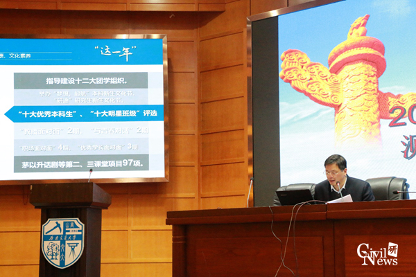 党委书记刘学毅、院长蒲黔辉首先代表学院党政班子对一年来的工作进行了述职汇报。刘书记从精准对标五个到位、全面推进“三全育人”工程和加快建立全国“双创”标杆以及当前存在的不足和问题等三个方面进行了总结。蒲院长从学科建设、教师队伍建设、人才培养、科研建设扥各方面所取得的成效和来年学院的发展改革进行了汇报。