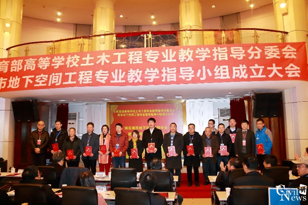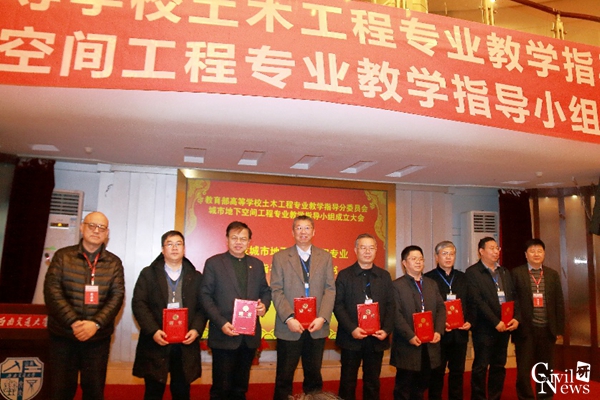 ,副组长单位郑州大学、南京工业大学、西安建筑科技大学、东南大学、重庆大学,成员单位中南大学、哈尔滨工业大学、石家庄铁道大学、兰州交通大学、山东大学、北方工业大学、西南石油大学、安徽理工大学、太原理工大学、昆明理工大学、吉林建筑大学、广东工业大学、辽宁工程技术大学、华侨大学、隧道股份上海市城建设计研究总院 (集团 ),共计20个高等学校和1个企业单位,由每个成员单位推荐1名代表形成了教学指导小组委员会。教育部土木类专业教学指导委员会主任委员李国强教授、教育部土木工程专业教学指导分委员会主任委员孙利民教授对各成员单位表示了祝贺,并为各成员单位委员颁发了聘书。