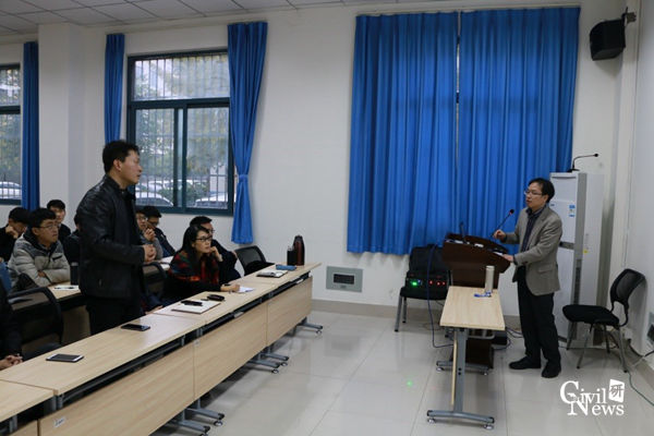 最后,张主任同参加讲座的老师及同学们就复合管片的应用现状和发展趋势进行了深入讨论。老师和同学们踊跃提问,张主任对所提问题都进行了耐心细致的解答。参加讲座的同学们从张主任讲述的盾构隧道创新设计理念中受益良多,既丰富了知识,也拓展了视野。至此,讲座历时2个多小时后在老师和同学们的热烈掌声中圆满结束。