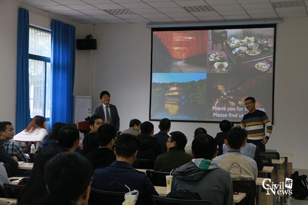 上午九点半,讲座准时开始。仓田真宏副教授首先进行了自我介绍,与会师生也表示对仓田真宏副教授的热烈欢迎。此次讲座主要围绕大震下医疗设施的损伤评估、减震技术及非结构构件的抗震性能展开。仓田副教授指出,在2016年熊本地震中,医疗设施受损严重,出现了较大的非结构的功能性损失,仓田副教授在研究中探明了医疗设施的地震响应,并在此基础上提出了减少医疗设施震损的隔震措施。