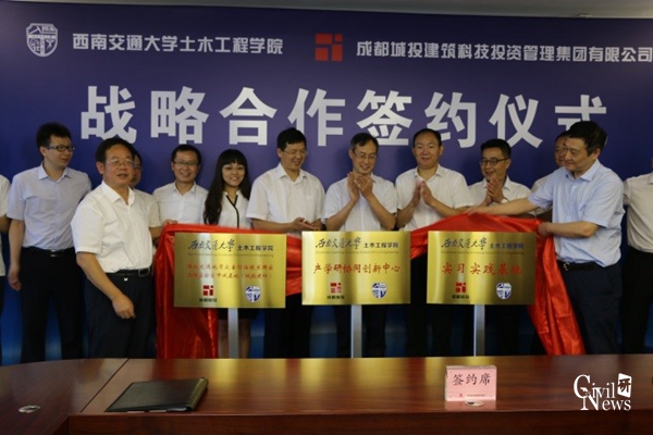 成为合作伙伴,此次合作符合学科交叉、校企合作的大趋势,在合作中要充分利用双方的优质资源,最终达到互利共赢的局面;罗刚副总经理结合自身从交大到城投工作的经历讲述了双方合作的重要意义和合作模式。李锦红副书记建议借助成都城投建筑科技集团的实践平台给交大学子提供实践机会,指导交大学子更好地进行职业规划。闻毓民副院长表示希望校企双方积极沟通,以互派顾问小组、开展论坛讨论等形式加强合作,以期达到双方效益最大化的目标。