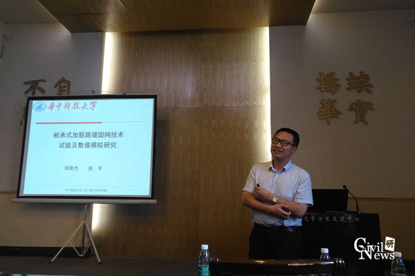 进行学术交流。郑院长长期从事地基处理计算理论及应用、岩土工程数值模拟、路基工程等方面的教学与科研工作,他本次以“桩承式加筋路堤固网技术试验及数值模拟研究”为题,在学术交流中心院士厅为大家带了一场精彩的前沿学术讲座。