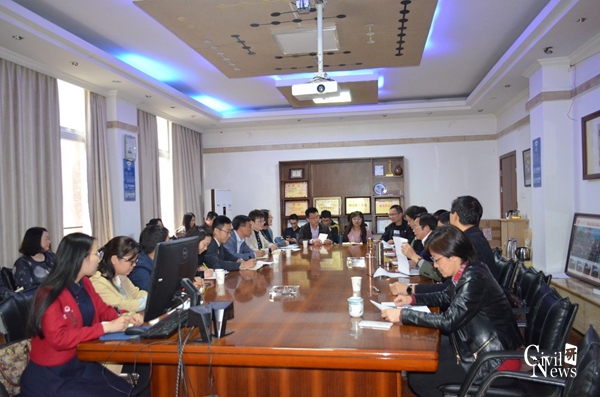 首先,双方相互介绍了出席座谈会的与会领导和人员。汪铮副部长随后表明了此行目的:通过调研,加强学校与学院的沟通,了解学院宣传工作,了解学院发展动态,深入挖掘工作亮点,宣传树立典范,积极营造良好的文化氛围,进一步加强校园文化建设。