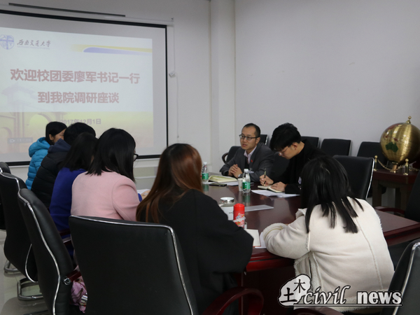 分团委调研交流座谈会于犀浦校区X4312会议室如期举行。与会人员有:校团委书记廖军、校团委兼职副书记陈景适,色情短剧